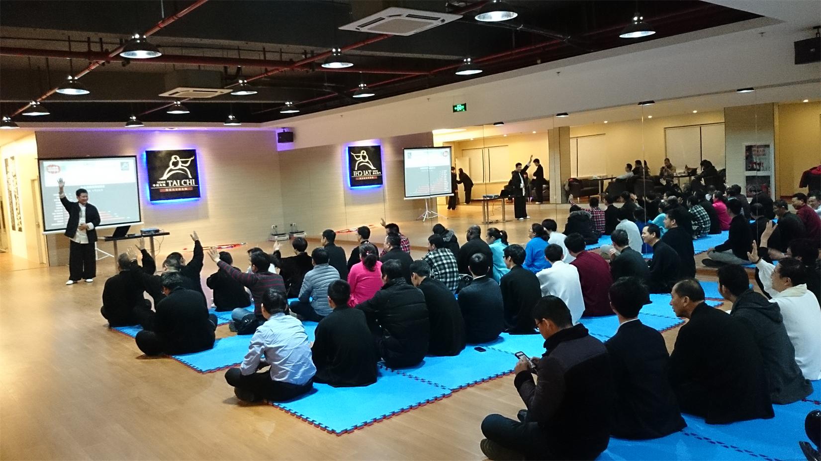 申健太极静安总馆于1月23日小年夜19:00迎来第一批学员,60名多位会员一起练了一套老架一路,“2014新春太极问道理论讲座”正式开讲,主讲老师申小建馆长将多年的练拳心得体会讲解给会员,受到大家的一致欢迎,其间有申健太极的教练们表演了一路,二路炮捶,双刀,春秋大刀,会员表演了新架、单剑等套路,讲座结束后会员们也纷纷在新拳馆留影。